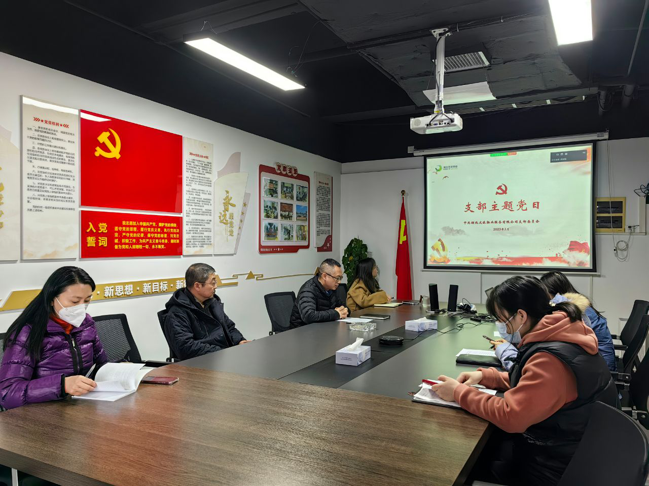 3月24日下午,金年会官方体育登录入口以“学习贯彻全国‘两会’精神,谋深谋实全年改革转型任务”为主题,组织了2023年3月支部主题党日活动。党支部书记、董事长程强主持会议,支部全体党员、入党积极分子、公司领导和各项目负责人参加会议。